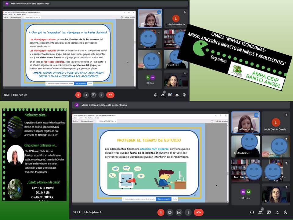 Desde la Asociación de Madres y Padres del CEIP Santo Ángel queremos transmitir nuestro agradecimiento a María Dolores por su predisposición para compartir con todos nosotros sus conocimientos en un tema tan actual y trascendental como el expuesto en la tarde del jueves, y que nos sirve de acicate para seguir trabajando en poner a disposición de las familias todos los recursos que estén a nuestro alcance con el fin de mejorar la educación y formación de nuestros hijos.