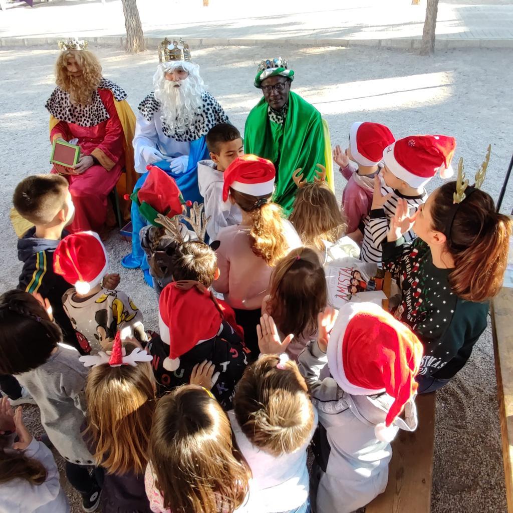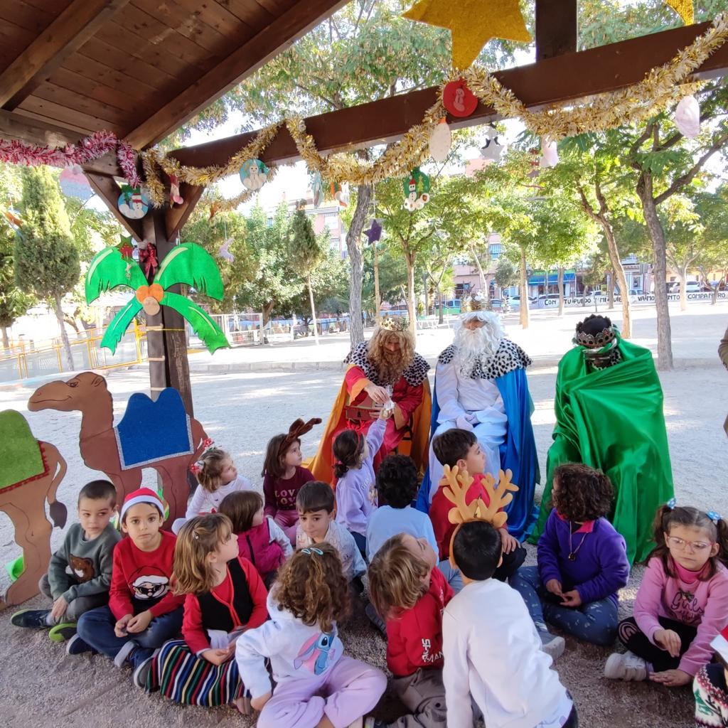 Como ya viene siendo habitual, las mamás de la comisión de fiestas de la AMPA lograron ponerse en contacto con Sus Majestades los Reyes Magos para que acudieran a su cita anual con los alumnos del CEIP Santo Ángel, y prepararon con la misma ilusión de siempre, el decorado navideño y los cofres con decenas de chocolatinas que se repartieron a todos los niños a lo largo de la jornada.