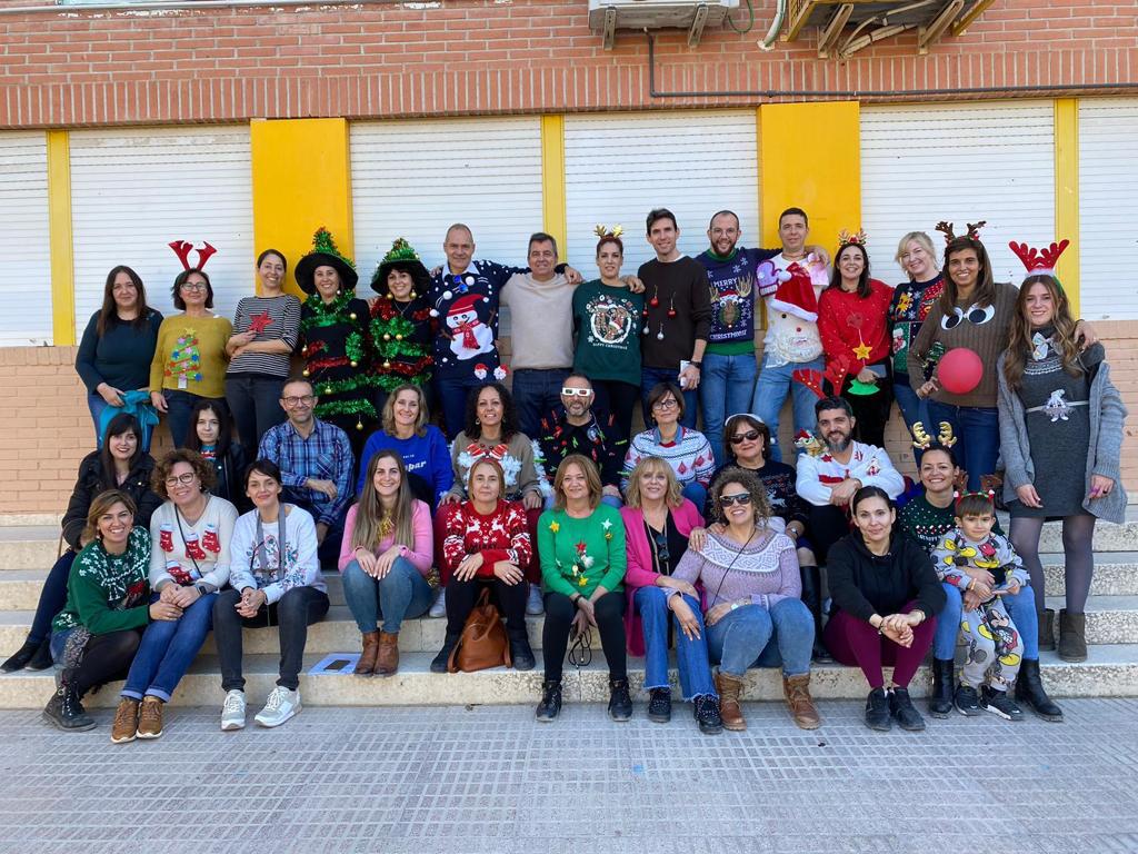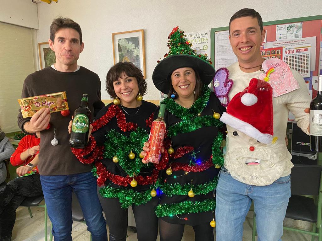 Y no queremos dejar pasar por alto el concurso de jerseys navideños realizado entre todos los maestros y maestras del cole, en el que se entregaron premios al “Más cutre”, al “Más hortera” y al “Más original” ¿Queréis saber quiénes fueron los premiados? ¿Adivináis a quién correspondió cada premio?
