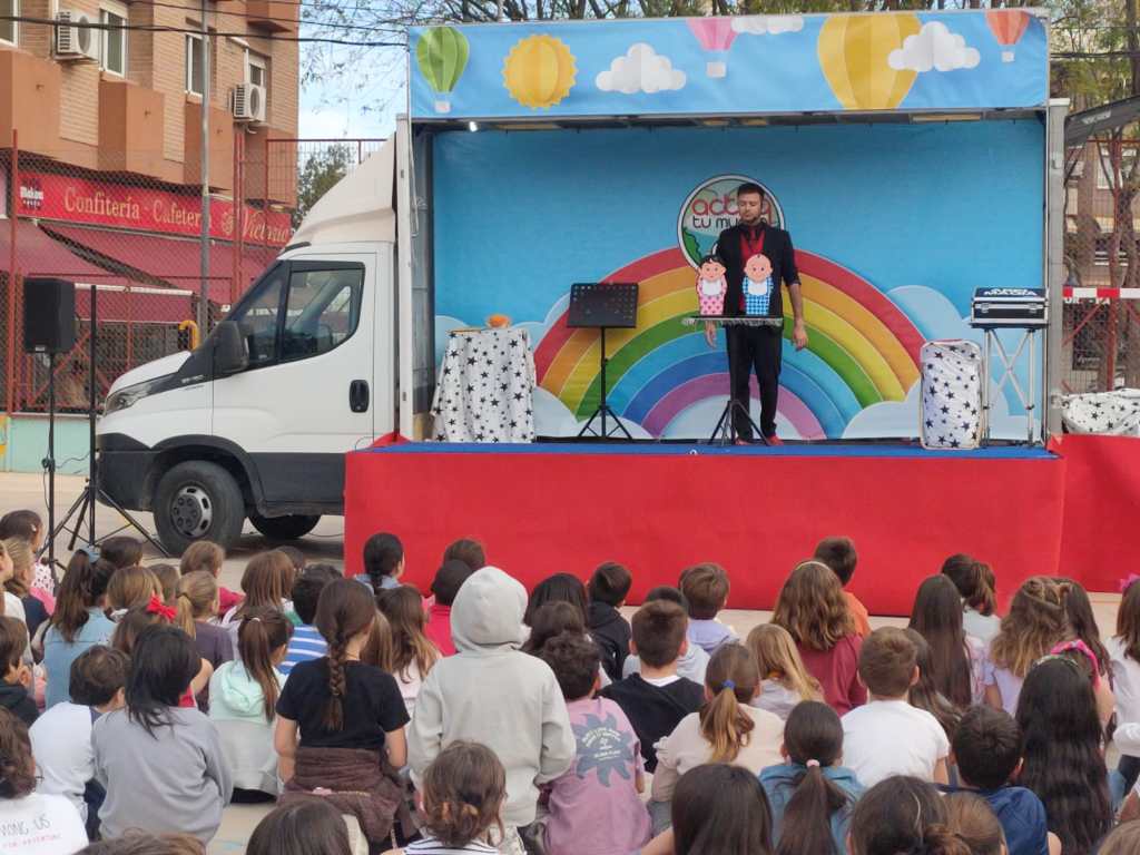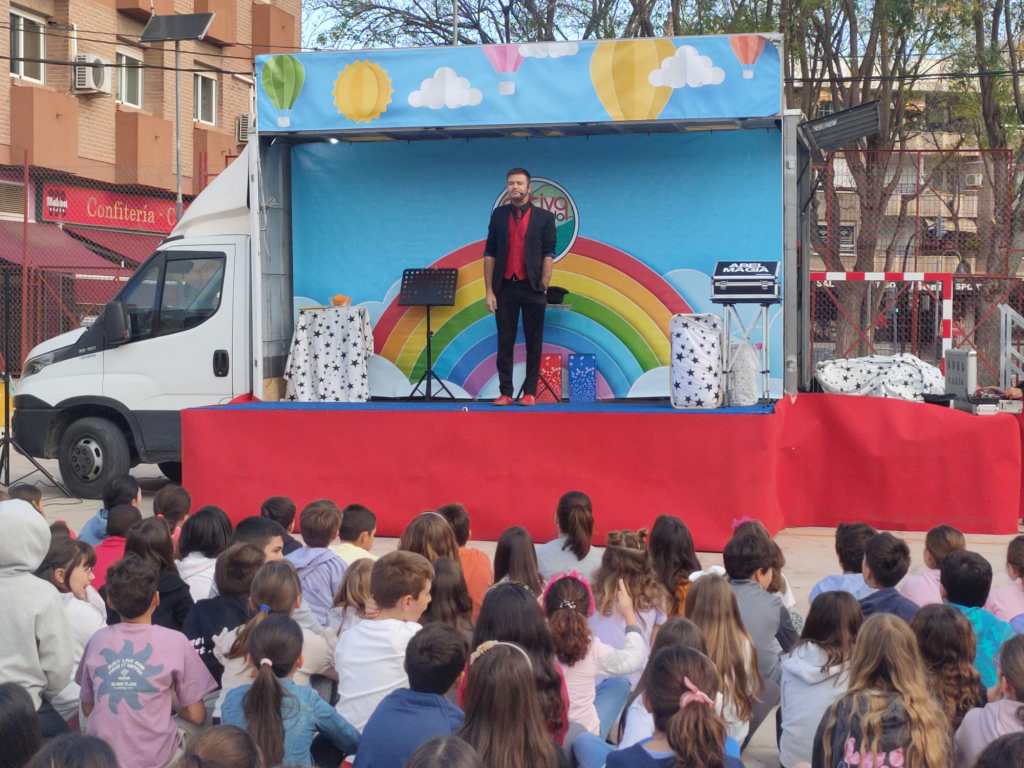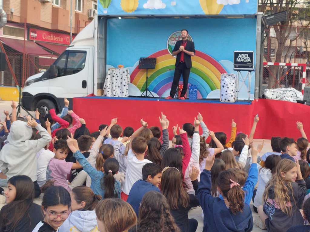 El mago AbelMagia, presentó en el patio del colegio un espectáculo interactivo de magia y humor, llevado al mundo de los libros.